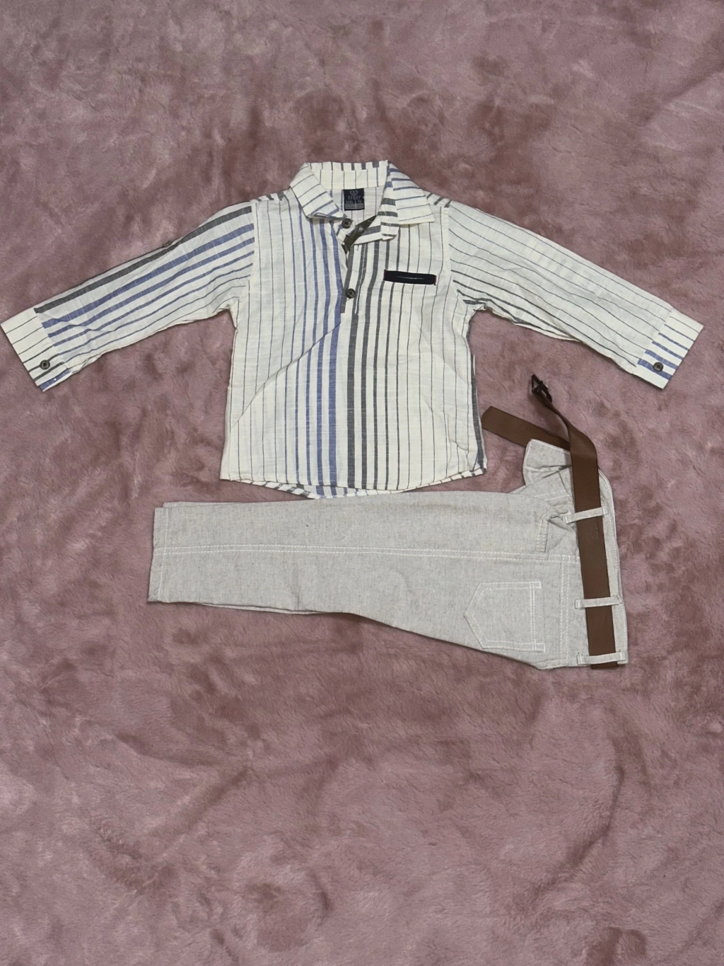 Minik beyefendiler için şıklık ve konforun bir arada olduğu 1-6 yaş aralığındaki alt üst takım keten bej setiyle tanışın. Hem şık hem de rahat tasarımıyla çocuğunuzun gün boyu özgürce hareket etmesini sağlar.