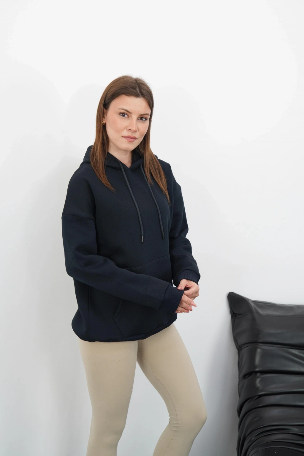 • 3 iplik şardonlu kapşonlu swetshirt lacivert md63
