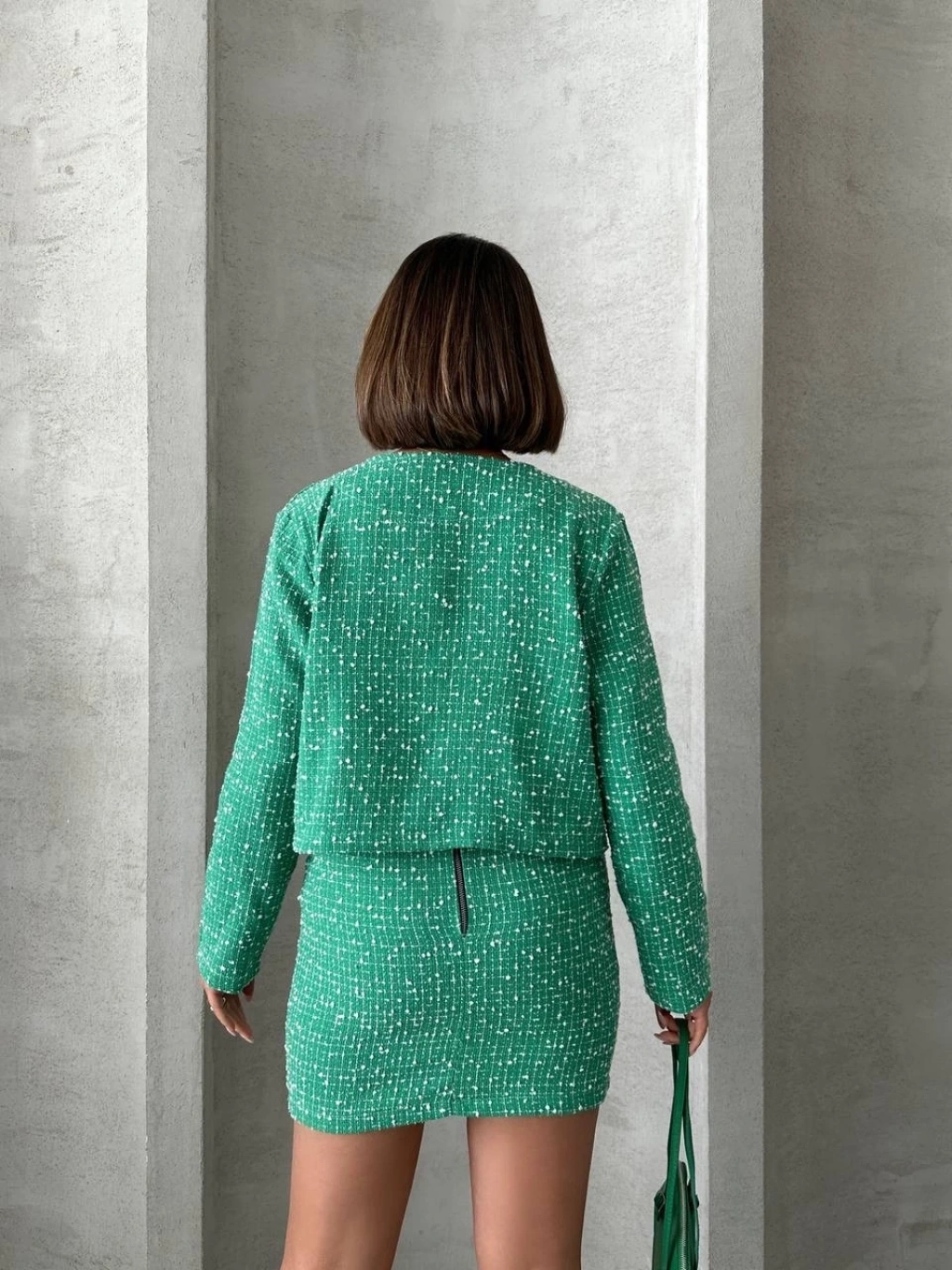 Modaya uygun ve tarz sahibi bir görünüm elde etmek isteyen kadınların tercihi olan Ceketli Etek Takım CHL Kumaş Yeşil H24443, gardırobunuzun vazgeçilmez parçalarından biri olmaya aday!
