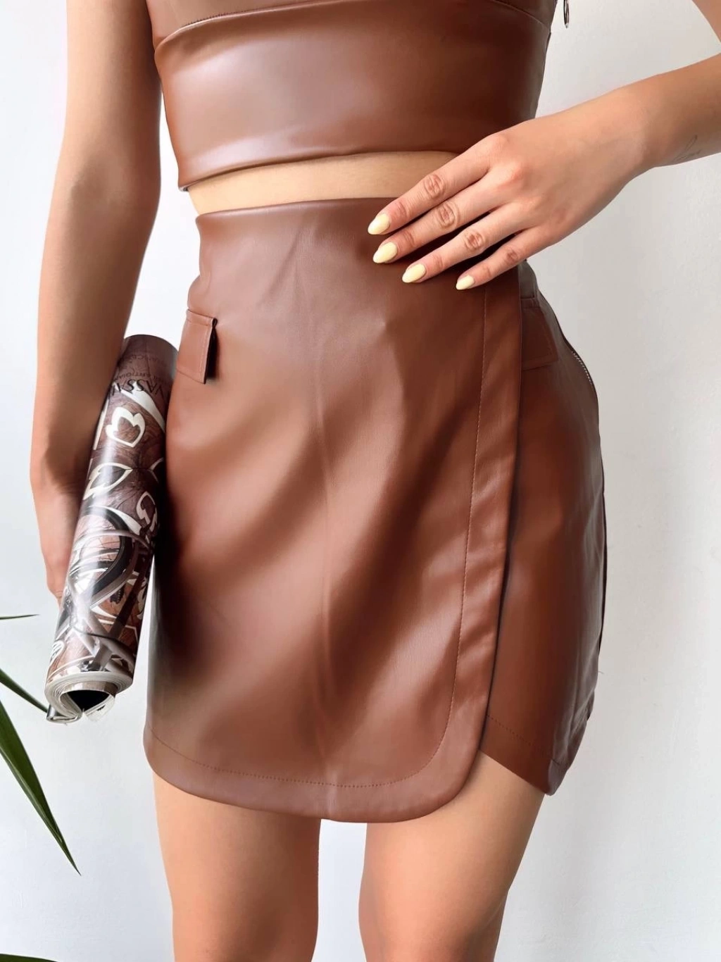 • Cep detaylı oval kapaklı deri etek kahve h240048