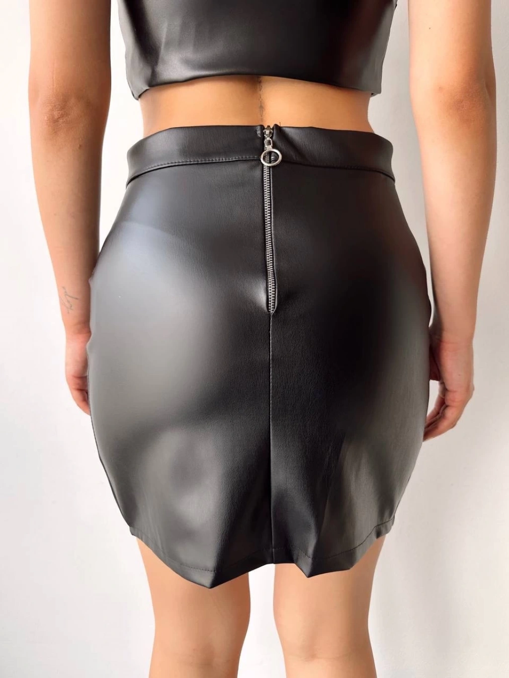 Şıklık ve zarafetin buluştuğu Cep Detaylı Oval Kapaklı Deri Etek Siyah, gardırobunuzun vazgeçilmezi olmaya aday!