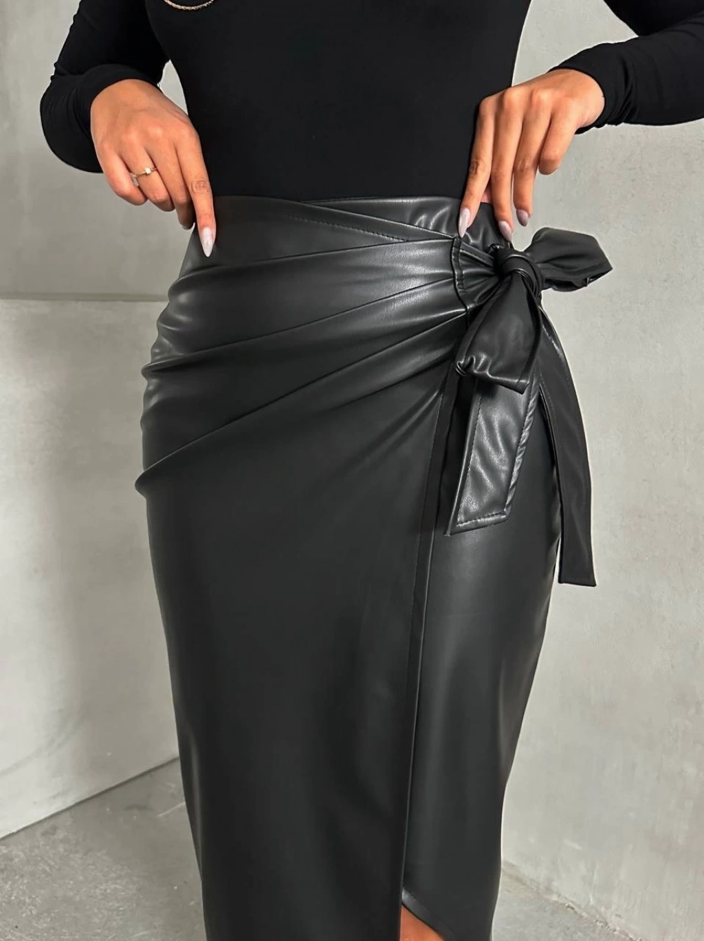 Şıklık ve zarafetin buluştuğu Kuşaklı Uzun Deri Etek, gardırobunuzun vazgeçilmezi olmaya aday. Hem günlük hayatta hem de özel davetlerde şıklığınızı tamamlayacak şık bir seçenektir.