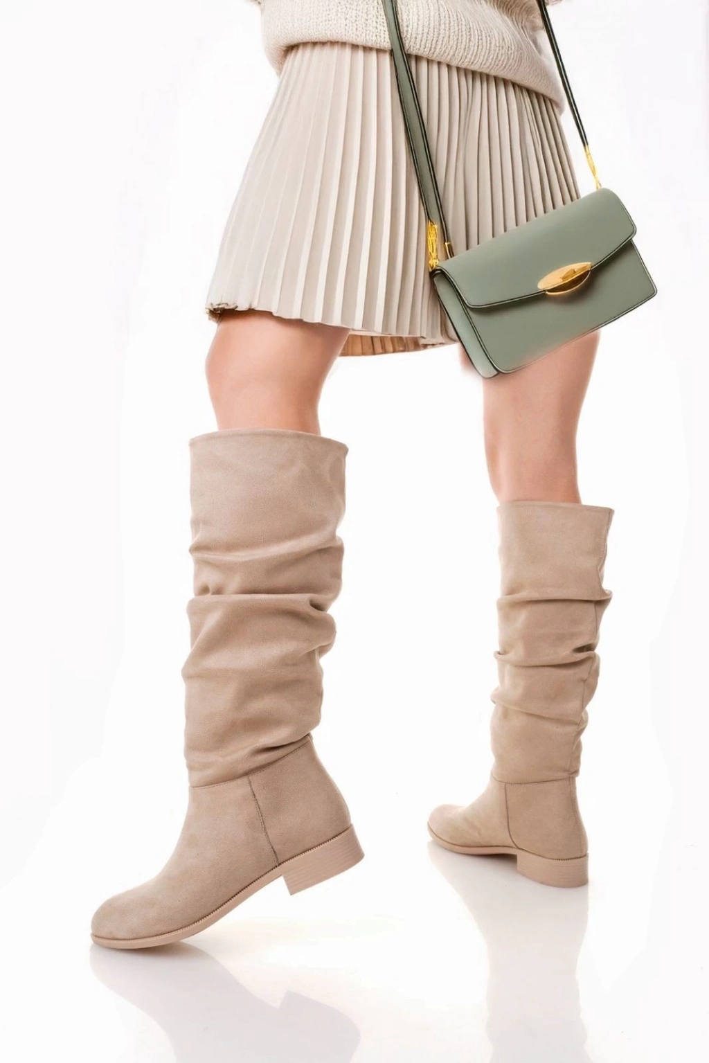 Detay: Topuklu Diz Altı Körüklü Çizme